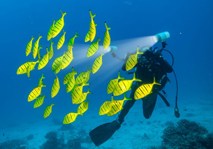 I det turkisblå hav omkring øerne Desroches og Felicité venter snorkelture og dybe dyk ned til en dramatisk undervandsverden i farver. Selv omkring flere af hotellernes velbevarede og levende husrev venter et fascinerende liv med spættede ørnerokker, farverige fisk og måske visit fra skildpadder og delfiner. Har du dykkercertifikat kan du komme endnu dybere ned i det Indiske Ocean og udforske labyrintiske undervandsgrotter, mens revhajer, muræner og barracudaer passerer forbi. På flere resorts kan du sammen med marineforskere og biologer være med til at sikre det fascinerende liv i havets overlevelse.