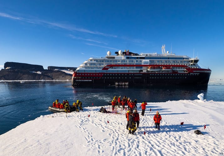 Med ekspeditionsskibet MS Fridtjof Nansen og det erfarne team af guider, biologer og foredragsholdere får du en dybt fascinerende rejse til Antarktis, Sydgeorgien og Falklandsøerne med både grønne bakker og britisk arv. En rejse fyldt med Zodiac-landgange tæt på isen og Antarktis’ kystlandskaber, pingvinkolonier og videnskabelig indsigt – i trygge og komfortable rammer.