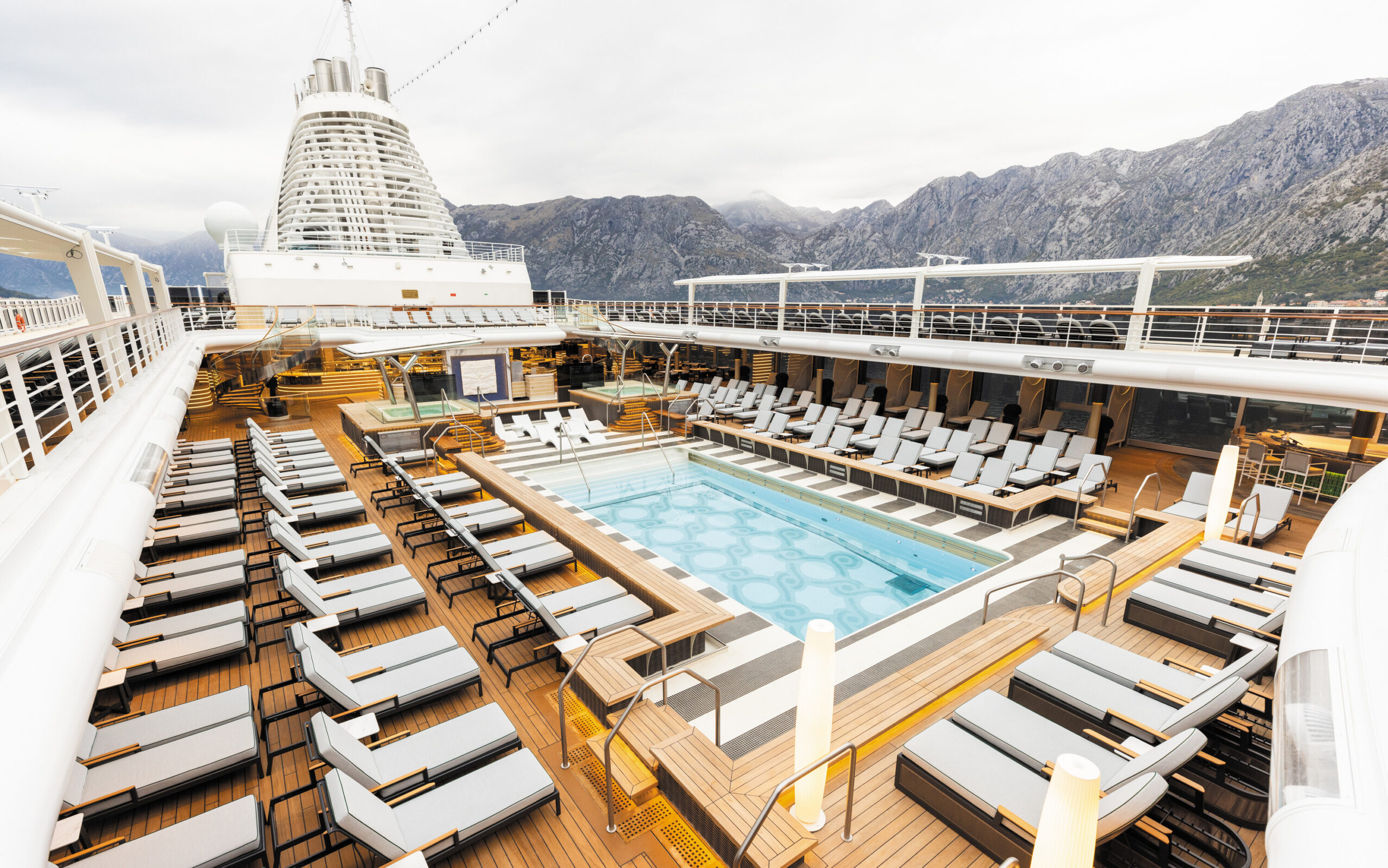 Skibet byder på rummelige suiter med egen balkon, personlig service og der følger dig fra morgenens første lys til dagens sidste glas vin. Dagen ombord flyder naturligt mellem smagsoplevelser i gourmetrestauranter, afslapning, spa-oplevelser og små stunder, du ikke vidste, du savnede.